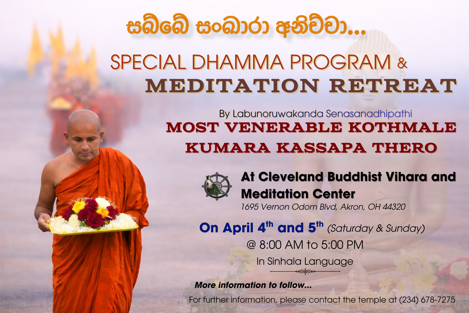 Venue: Cleveland Buddhist Vihara, 1695 Vernon Odom Blvd, Akron, OH 44320